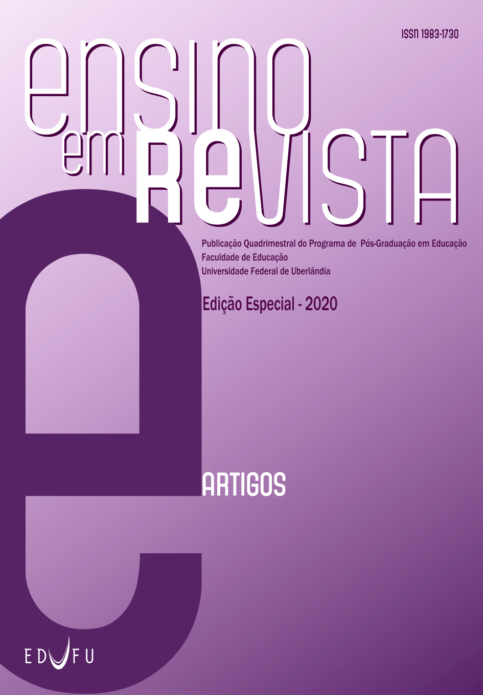 ATENÇÃO: Informamos que durante o primeiro semestre de 2021, a Ensino Re-Vista NÃO receberá artigos por fluxo contínuo. Nesse período, receberemos artigos SOMENTE para os dois Dossiês Temáticos, cujas chamadas estão em andamento.